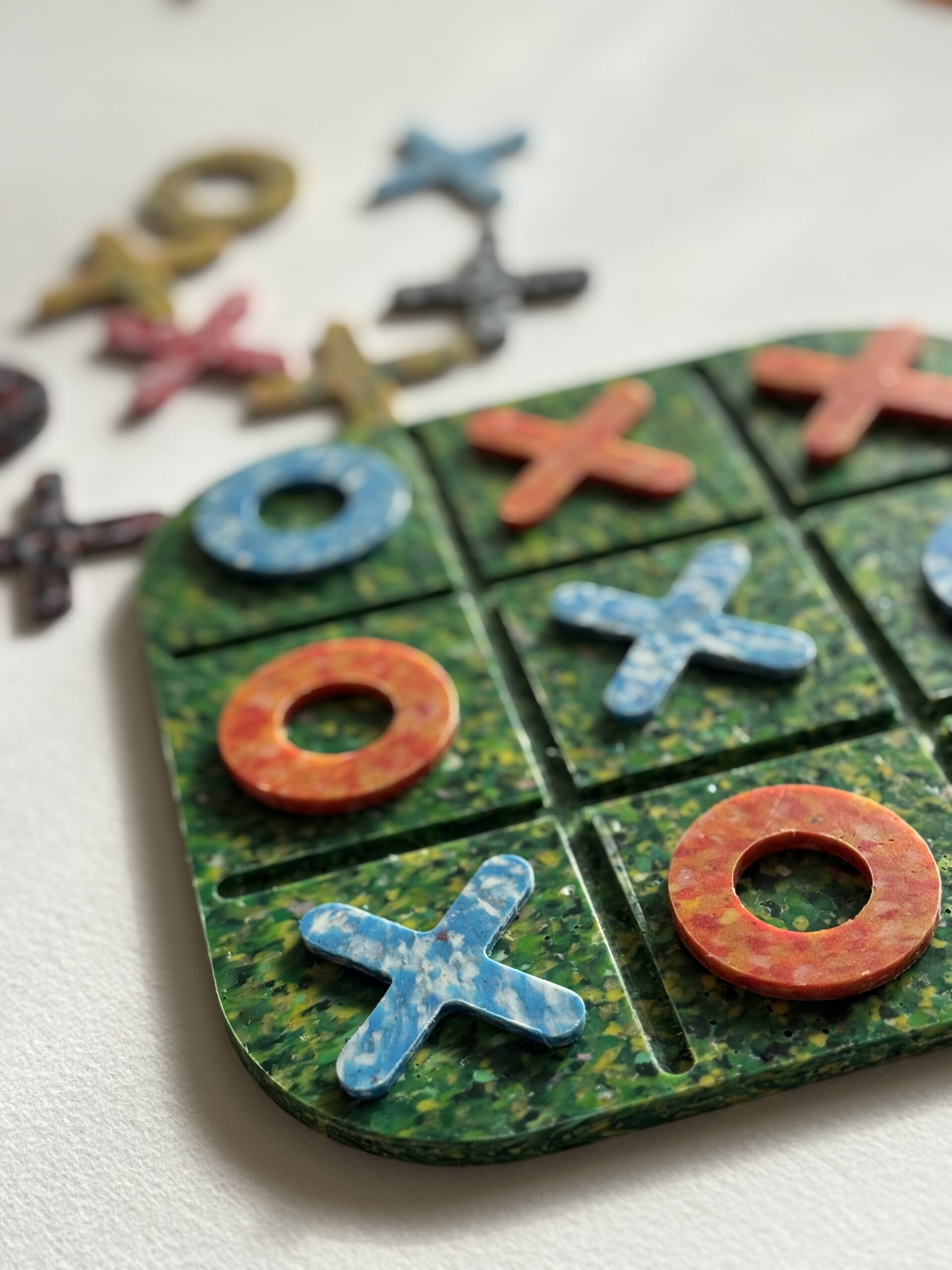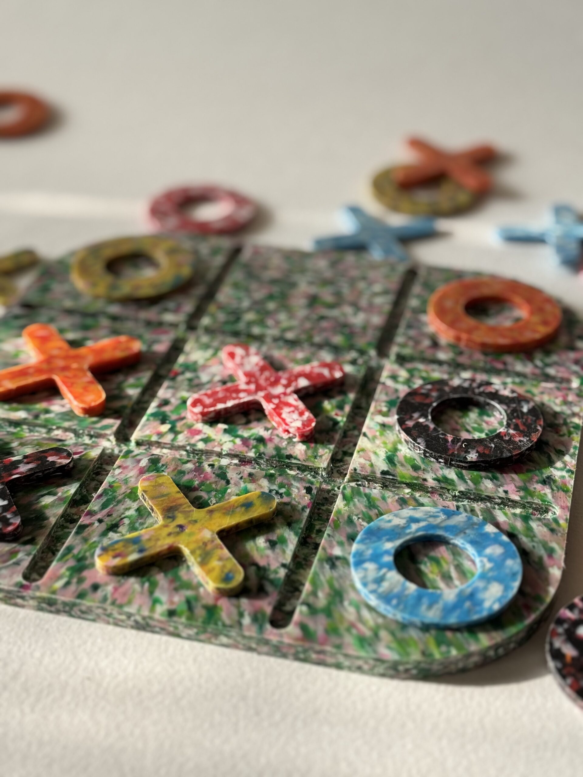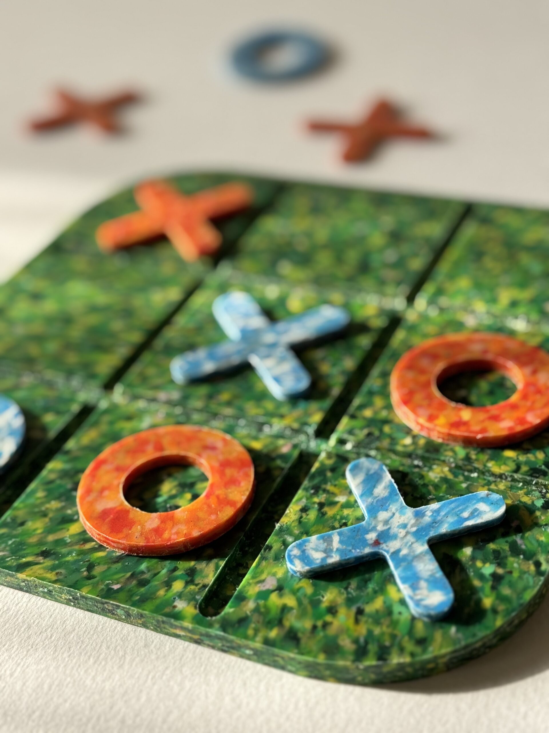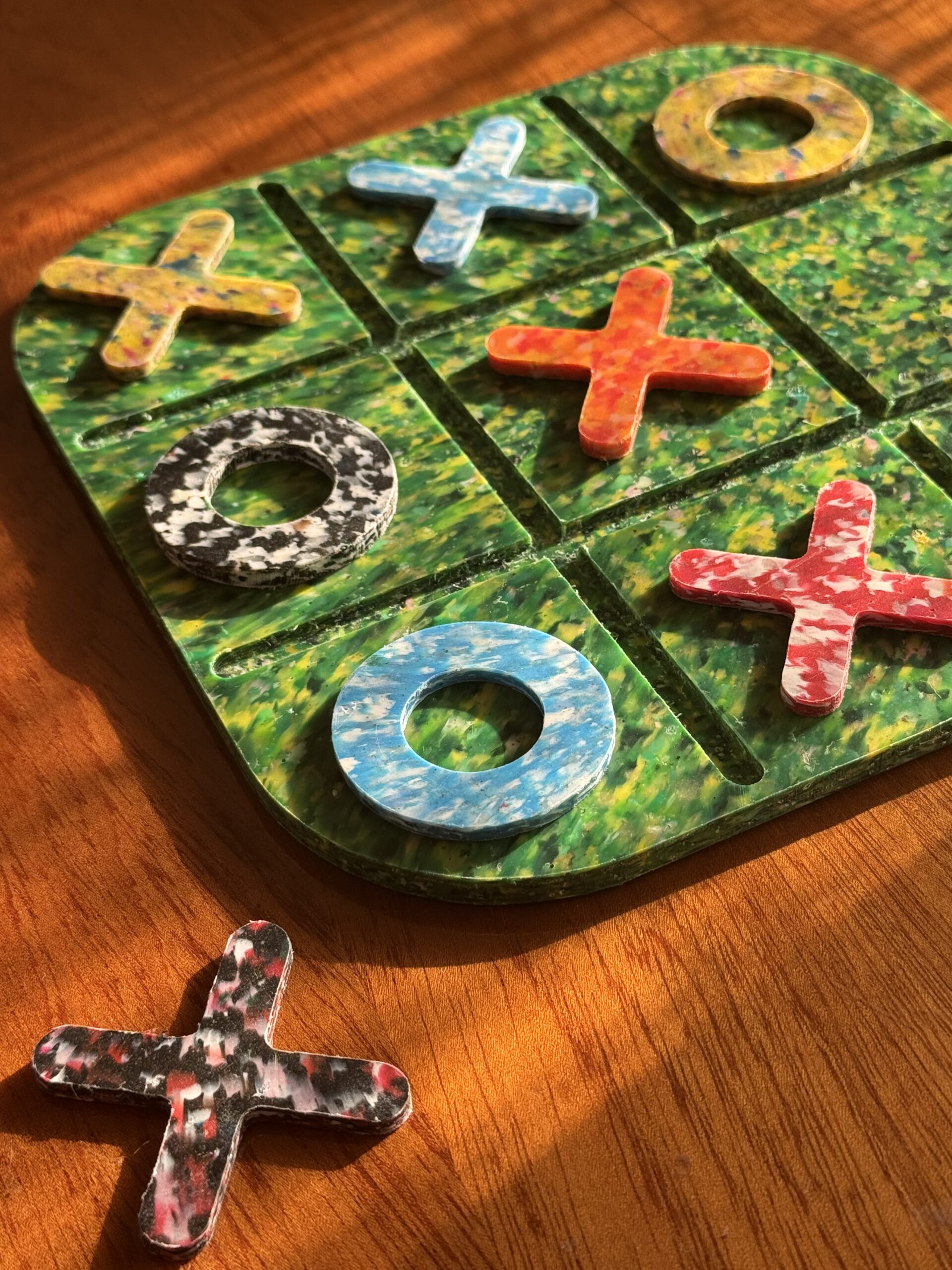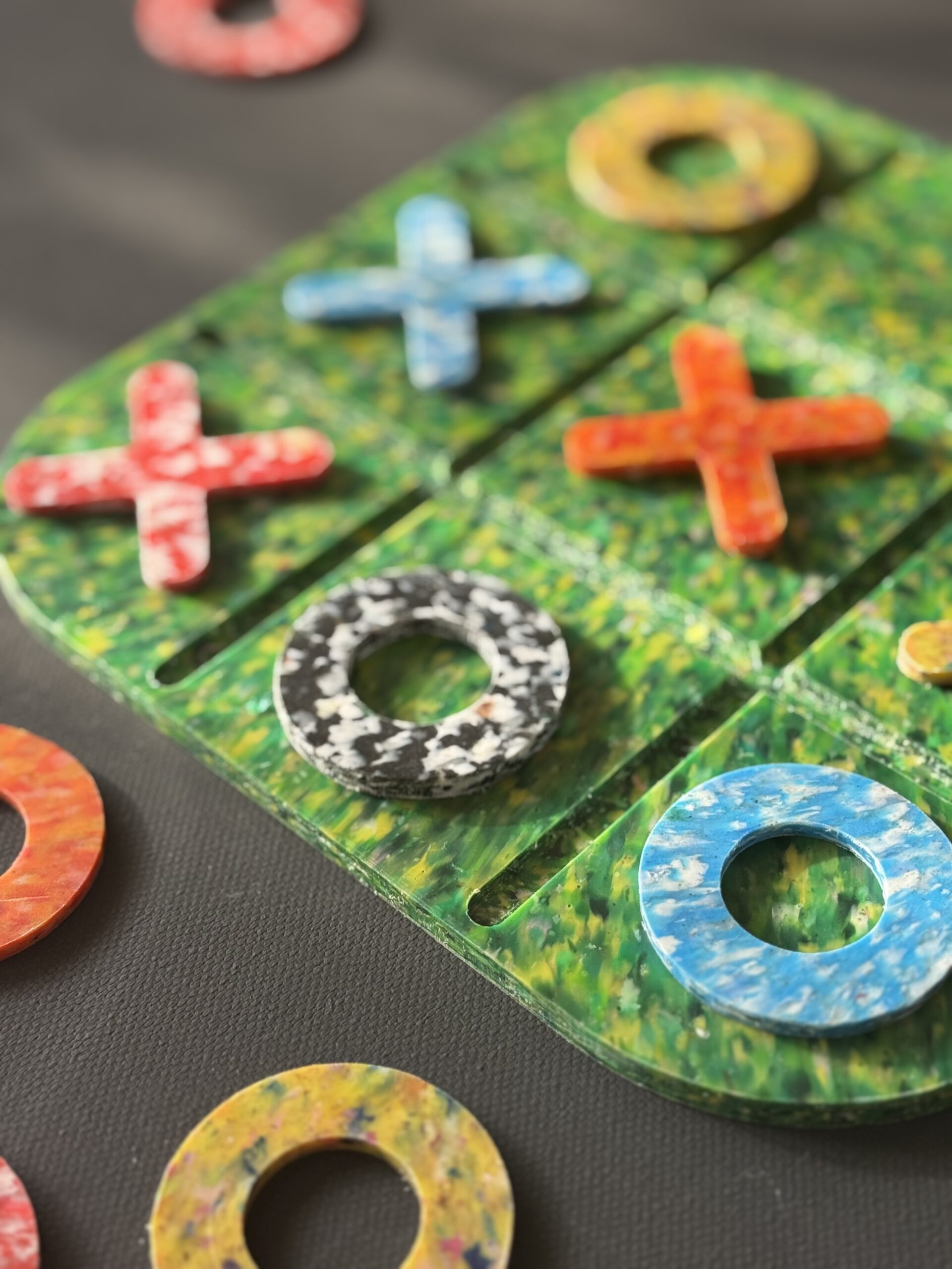 Working with recycled materials means embracing small variations in color and texture. These are not defects, but a natural result of giving plastic a second life and keeping it in use. Each game carries the story of the material it was made from — proof that waste can be transformed into something meaningful.
