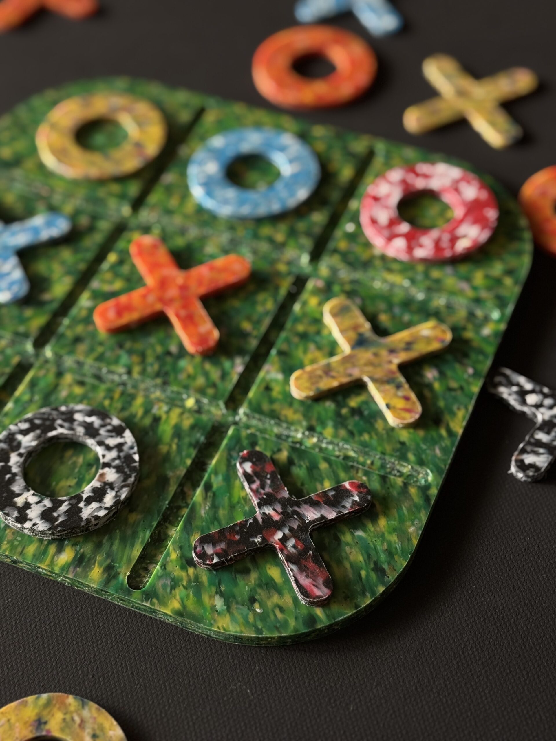This tic-tac-toe game is made from 100% recycled plastic, giving new life to discarded bottlecaps.